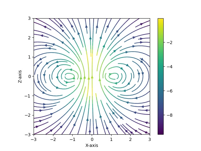 아래와 같이 자석에 의한 자기력선과 유사하다. 시작점과 끝점이 없다.