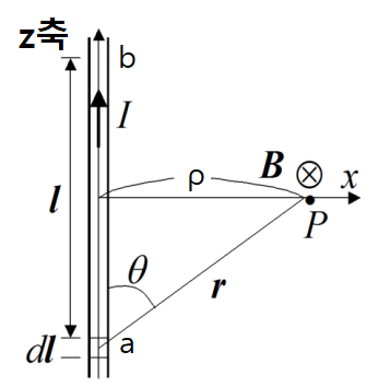 위 그림을 참고하고 1/(l2+ρ2)1.5 dl = l/ρ2(ㅣ2+ρ2)0.5 |ab 를 이용하면,