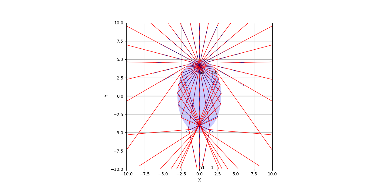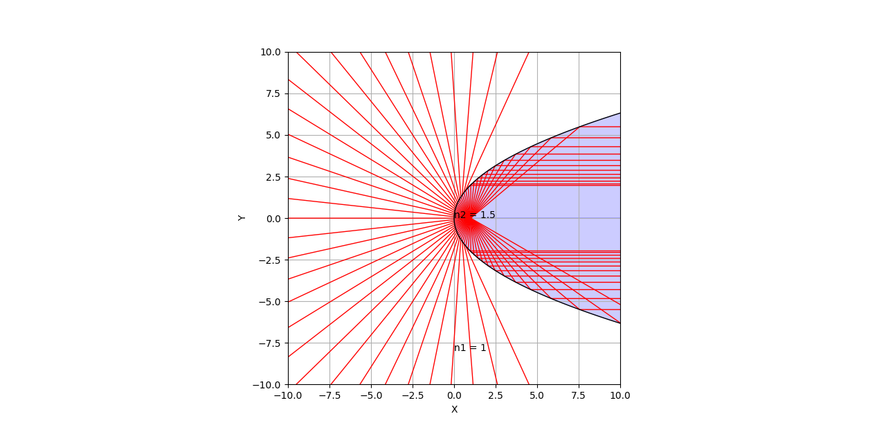 이전 게시글(빛의 경로 계산)의 심화 연장으로, 이번에는 원뿔 곡선(타원, 포물선, 쌍곡선)의 초점에서 출발한 빛살들의