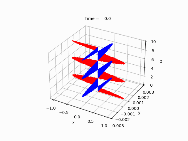 E = append(E, array([cos(k*z-w*t), zeros(n), z]).T, axis=0) # z-axis