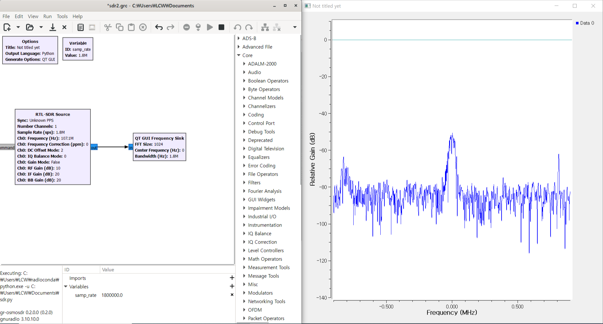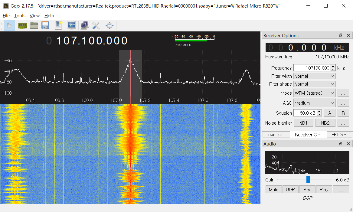 마지막으로 설치완료 후 gqrx를 통해 FM방송을 들어보고, 시험삼아 GNU Radio를 통해 전파 스펙트럼을 plot해 볼게요!