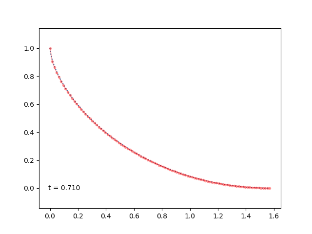 1. 먼저 경계조건 A(0, 1), B(π/2, 0) 점을 고정하고, x는 그 사이 등간격으로 n=100, 초기함수 f(x)는 A-B 직선으로 시작