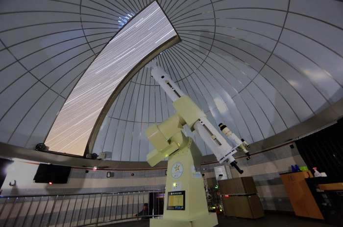 길이 약 5m의 거대한 굴절 망원경이 적도의(Equatorial mount)에 있고, 관측돔이 전자동 제어시스템으로 작동됩니다. 웅장하고 멋집니다! 짝짝짝!