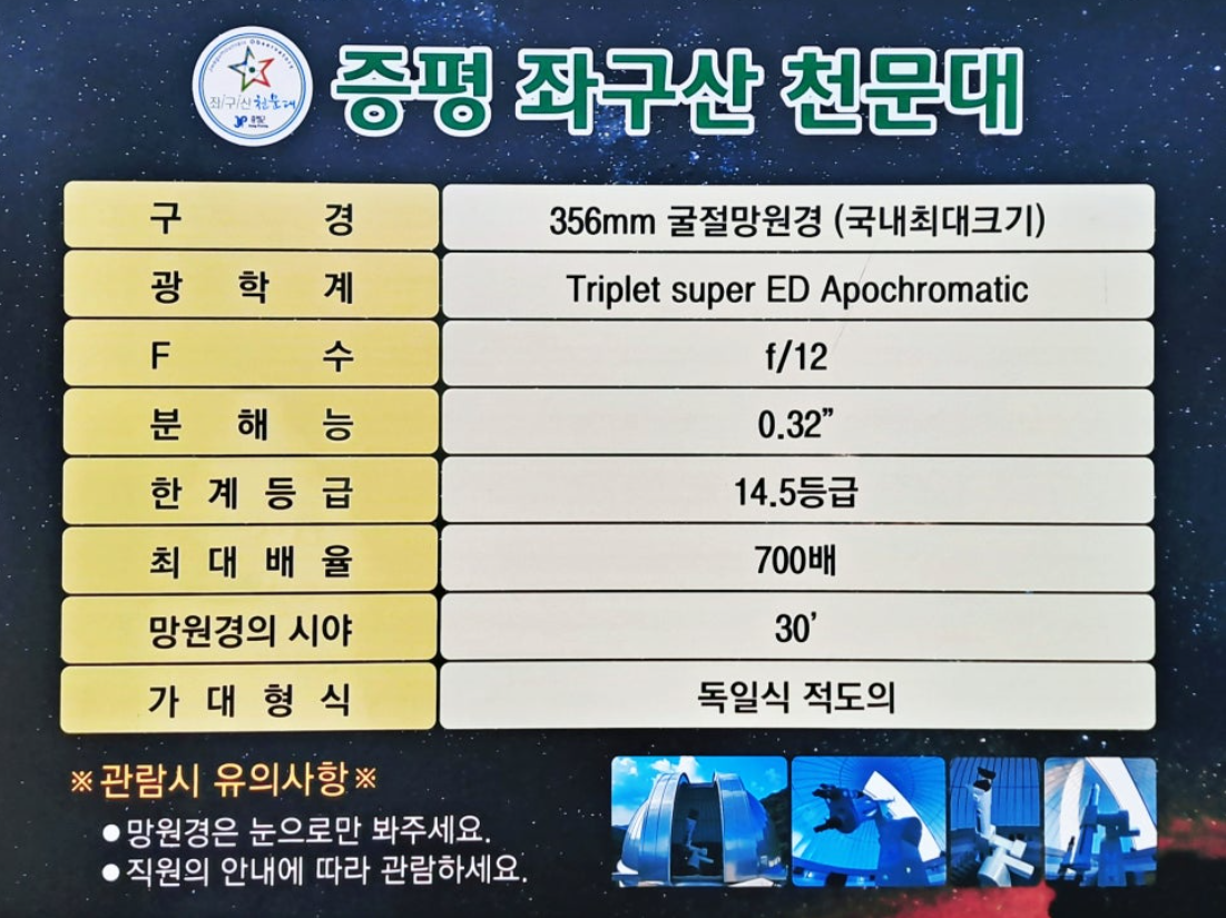 좌구산 시민 천문대에 자랑,,, 국내 최대 굴절 망원경입니다.