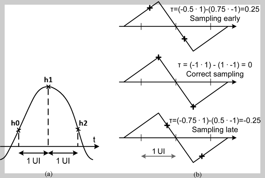 신호를 무선으로 전송하면 이동 시간으로 인해 임의의 위상 편이가 발생하여 수신기에서 (송신기와 같은) 정확한 시점에서 샘플링할 가능성이 낮게 되고 이는 곧 에러가 발생가능성이 높아집니다. 따라서 시간 이동을 통해 디지털 심볼의 정점을 추적하여 샘플링을할 수 있어야하는데, 여기서는 이처럼 시간 동기화를 구현한 Mueller & Muller 클럭 복구 기술을 소개하겠습니다.